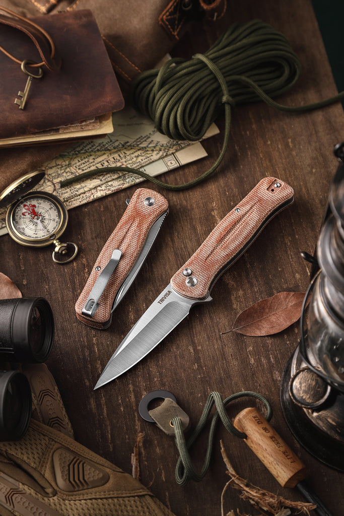 Dor-04Ba Button Lock,3.66" 14C28N Steel,Micarta Handle