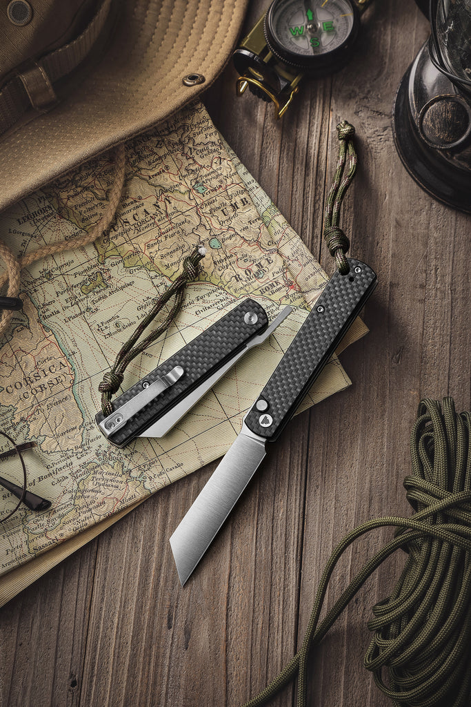 Hydra-05 Higonokami Button Lock,3.2"(81mm) 10Cr15CoMoV Steel,Carbon Fiber & G10 Handle