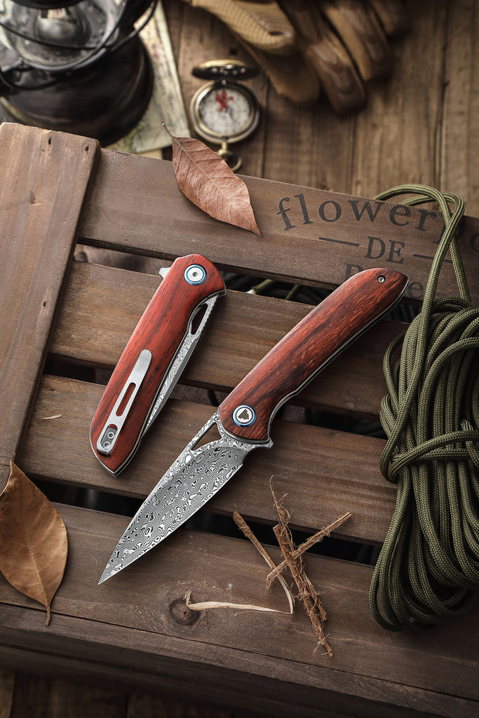 Sgr-01 Liner Lock,3.48" 110 Layers Damascus Steel,Rosewood Handle