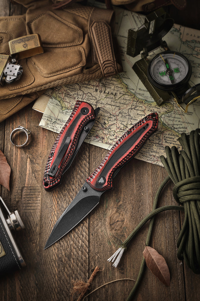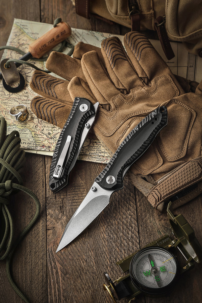 Delphinus-03RB Liner Lock EDC Folding Knfe,Front Flipper 3" 14C28N Steel Blade,G10 Handle