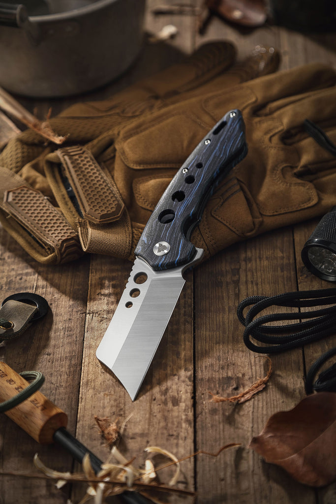 Mensae-03BB Folding Hunting Knife with Pocket Clip,154CM Steel Blade,Wood Style G10 Handle