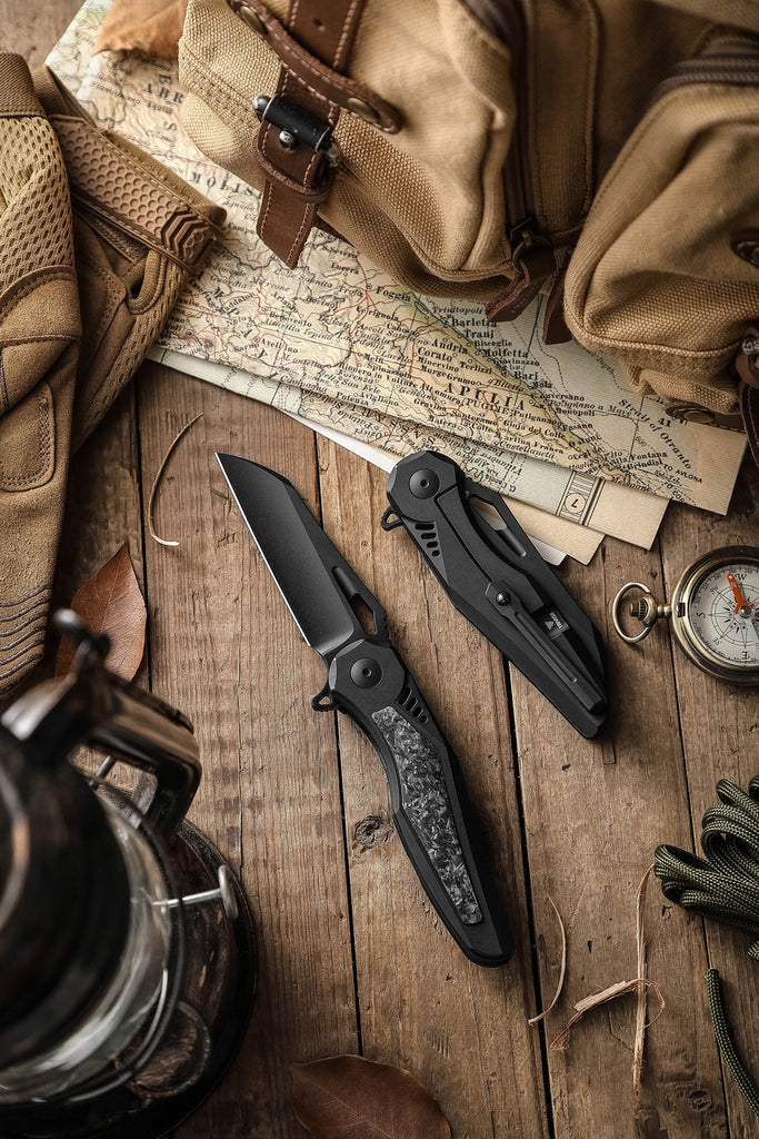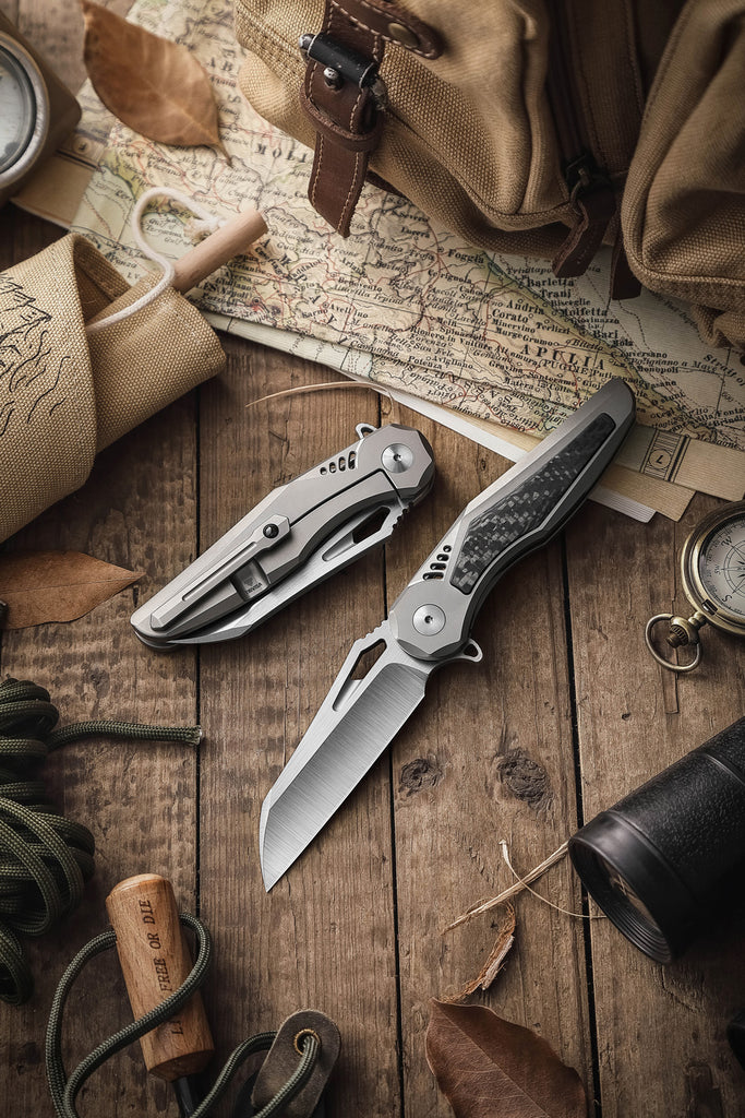 Oph-06B Black Stonewash Finished M390 Blade Titanium Handle with Carbon Fiber