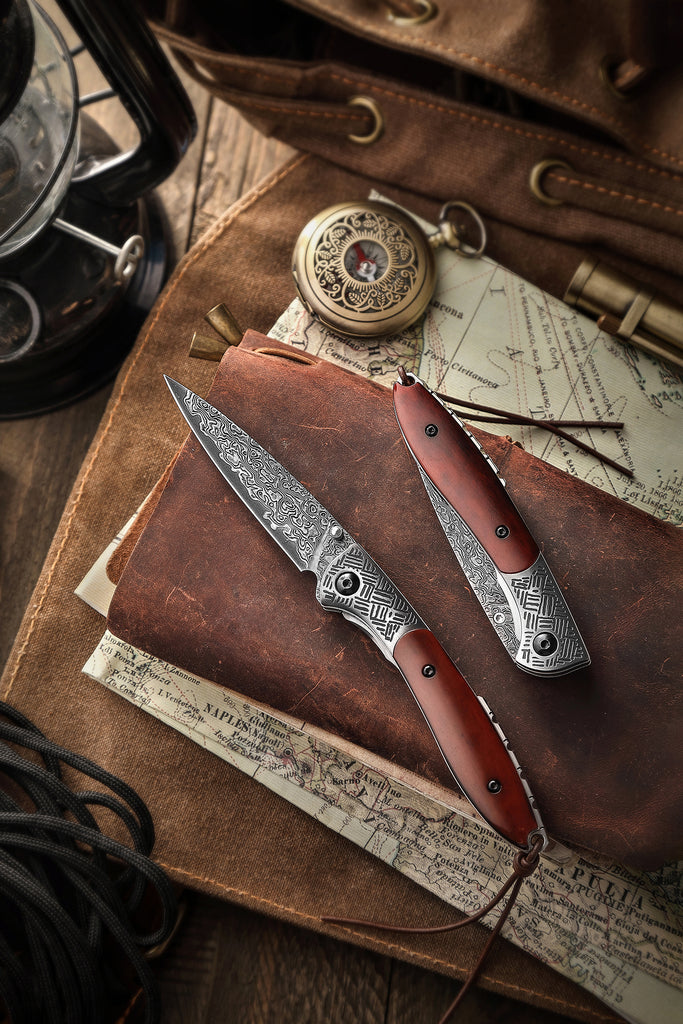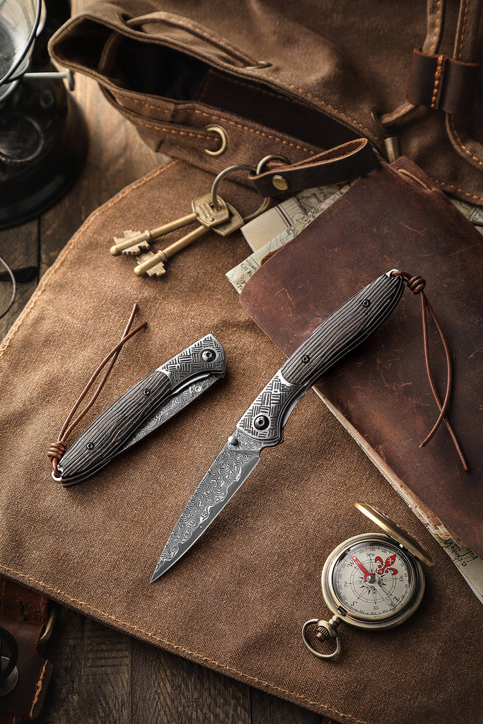 Piscis Austrinus-01E Handmade Pocket Knife,3.15in 67 Layers Damascus Steel Blade,Ebony Handle