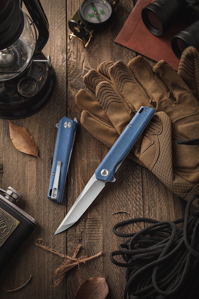 Material do cabo: micarta azul